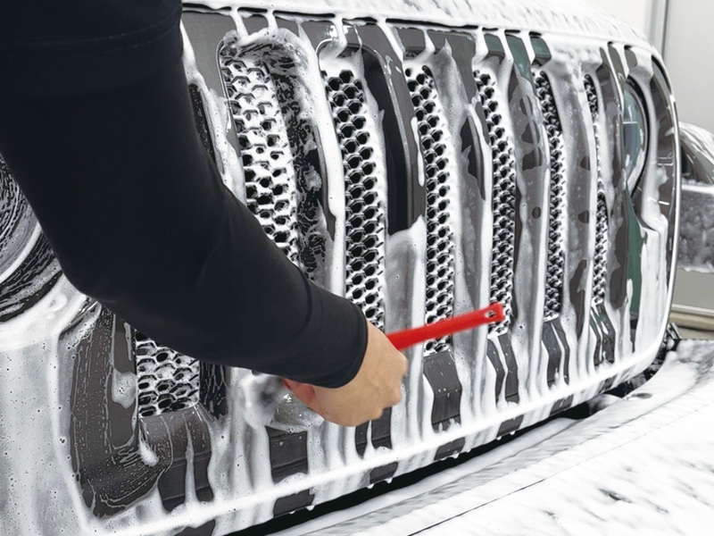 泡をかけるだけ!こすらず虫や油などの汚れを浮かし、水圧で汚れを飛ばす。専用の柔らかいブラシで水垢を取り除く。最後は専用のタオルで綺麗に拭きあげ、ピカピカに仕上げる!