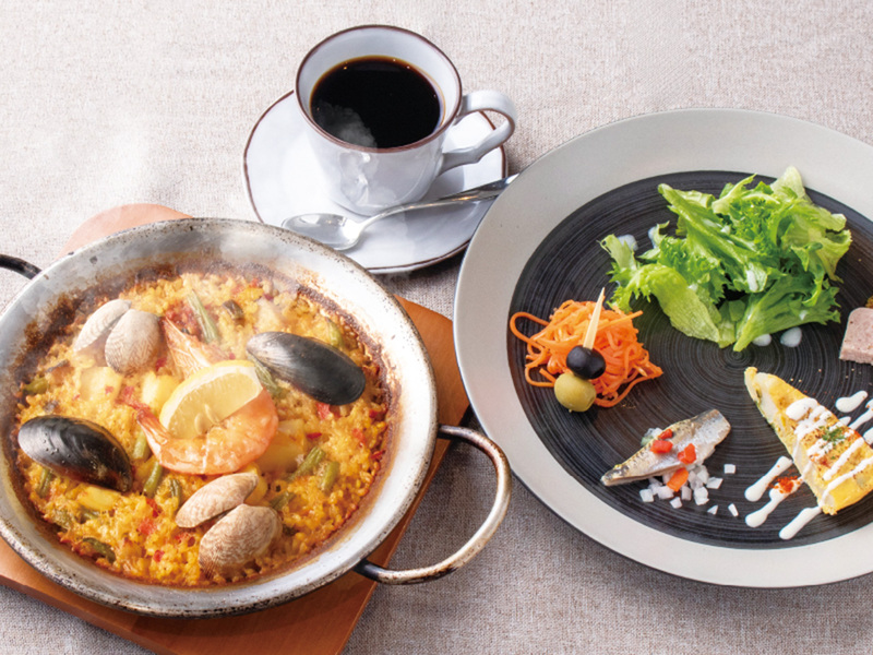「パエリアランチセット(1,760円・土日は1,980円)」は前菜タパス、本格パエリアがお得に楽しめる。提供に時間がかかるため余裕をもった予約、来店を。
