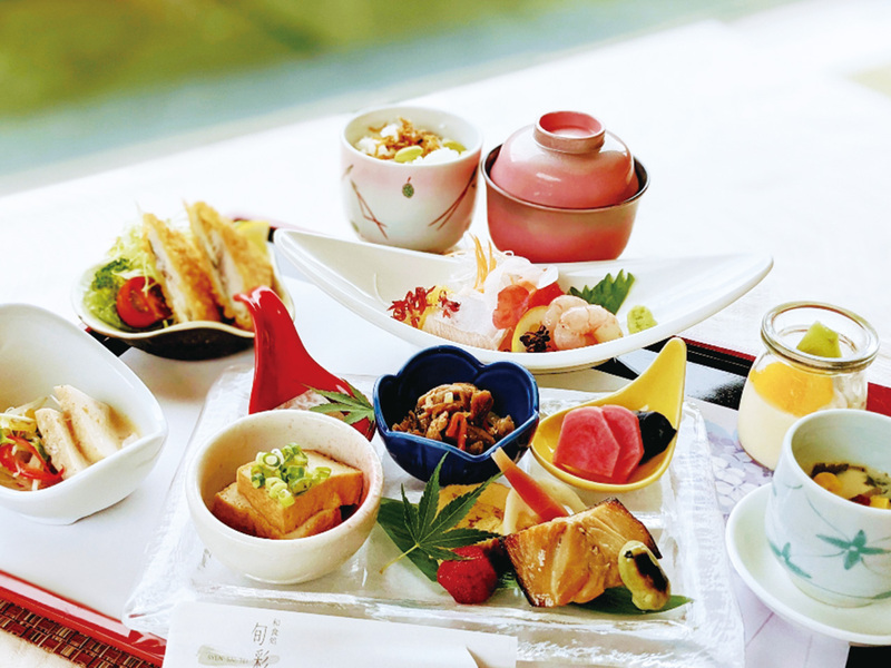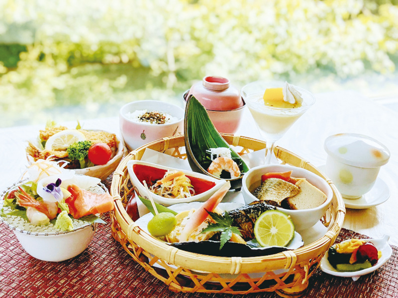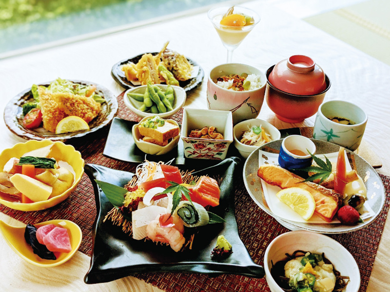 前菜3点盛、刺身5点盛、ローストビーフサラダ、のどぐろと旬野菜の天ぷら、豚の角煮、越後冷製のっぺなど豪華な内容。通常ディナータイム限定だが、事前予約でランチタイムでの提供も可能。