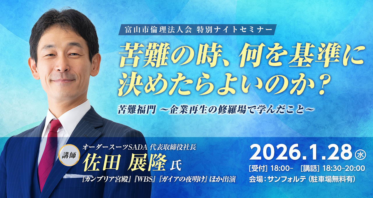 佐田 展隆「苦難福門」特別ナイトセミナー|富山市倫理法人会