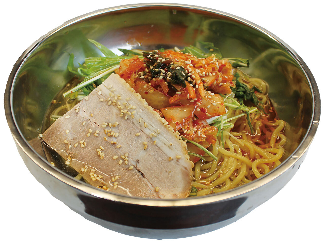 和風だし香るキムチ冷やしラーメン[990円](写真1) 2026年もさっぱり冷やしメニューが登場。白だしのうま味が効いた冷製スープに、水菜と韓国産キムチがアクセント。辛さ調節はラー油で! 月~金曜15時までライスが150円で食べ放題。毎月12日「ぼんち家の日」は醤油・塩ラーメンが各650円と超お得に!! [麺]中細麺 [スープ]あっさり ●○○○○ こってり