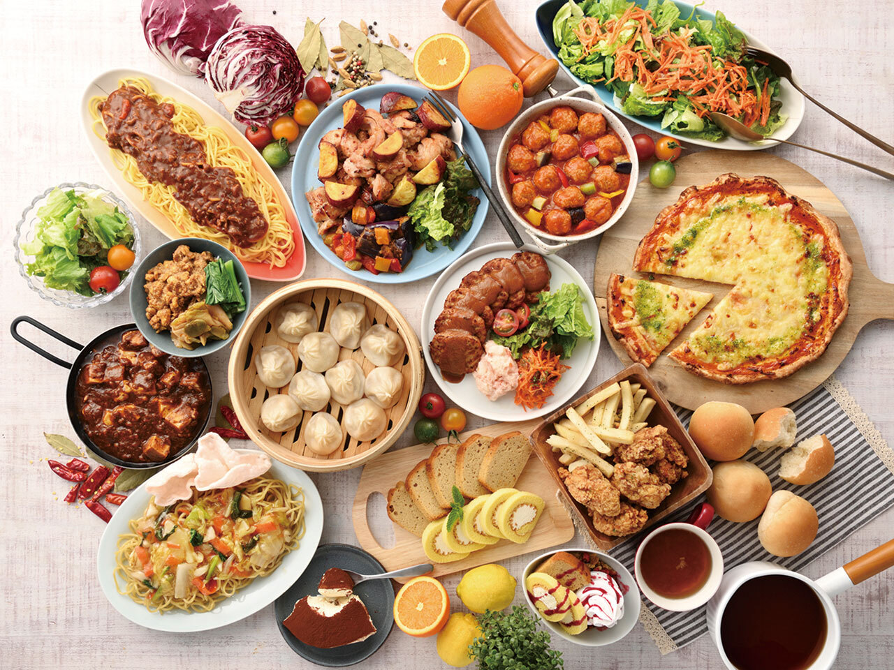時間無制限で好きなものを好きなだけ! 和洋中65品以上と豊富なメニューが食べ放題。お寿司や点心、ステーキ食べ放題のコースや、45分制のコースは、大人1,099円から! GWはみんなでブッフェに行こう!!