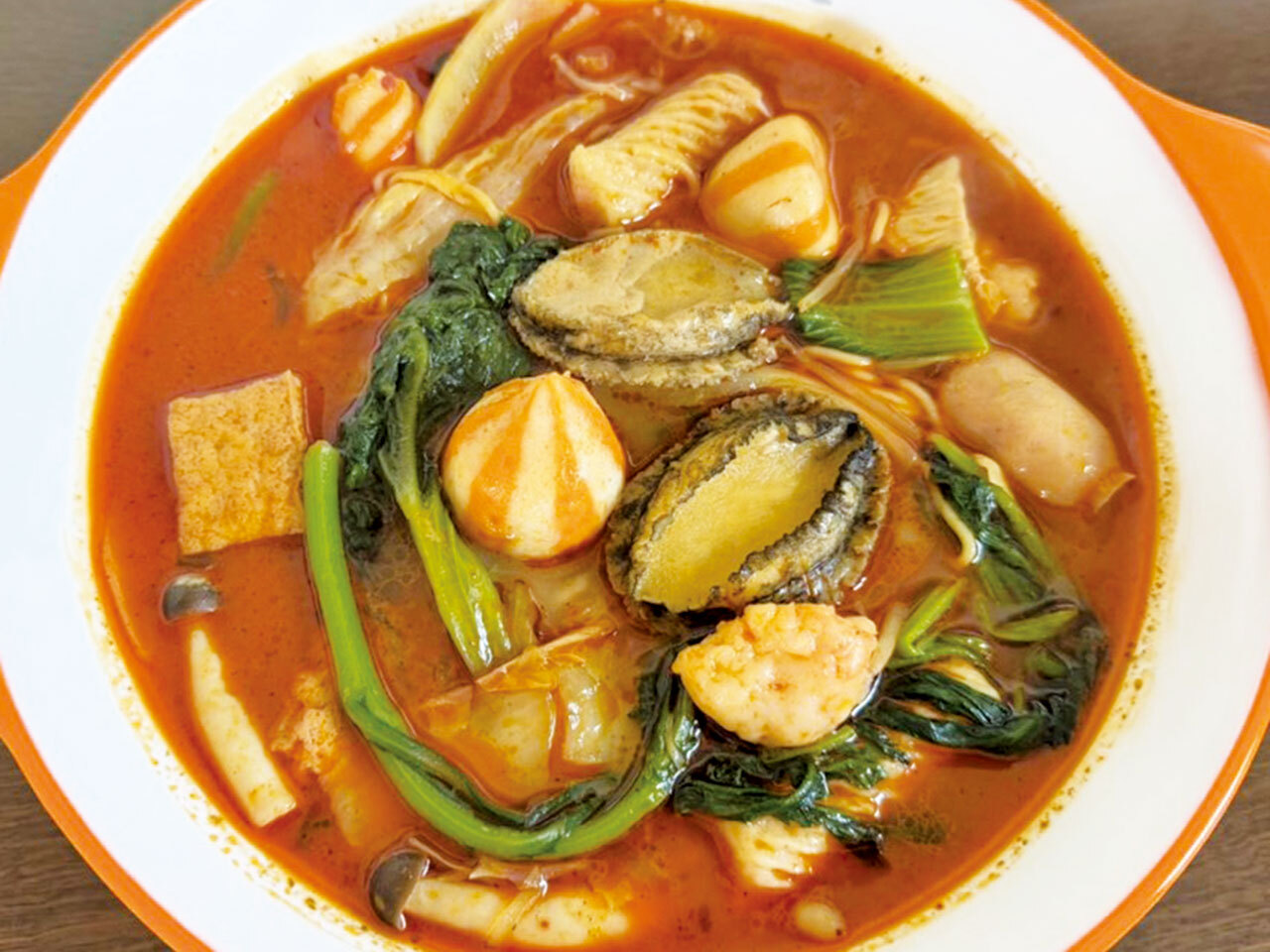 3/22オープンの麻辣湯の新店。約40種類中から好きな具材を選び、オリジナルの一杯を楽しめる。辛さも選べるので辛さが苦手でも◎。100g、380円。