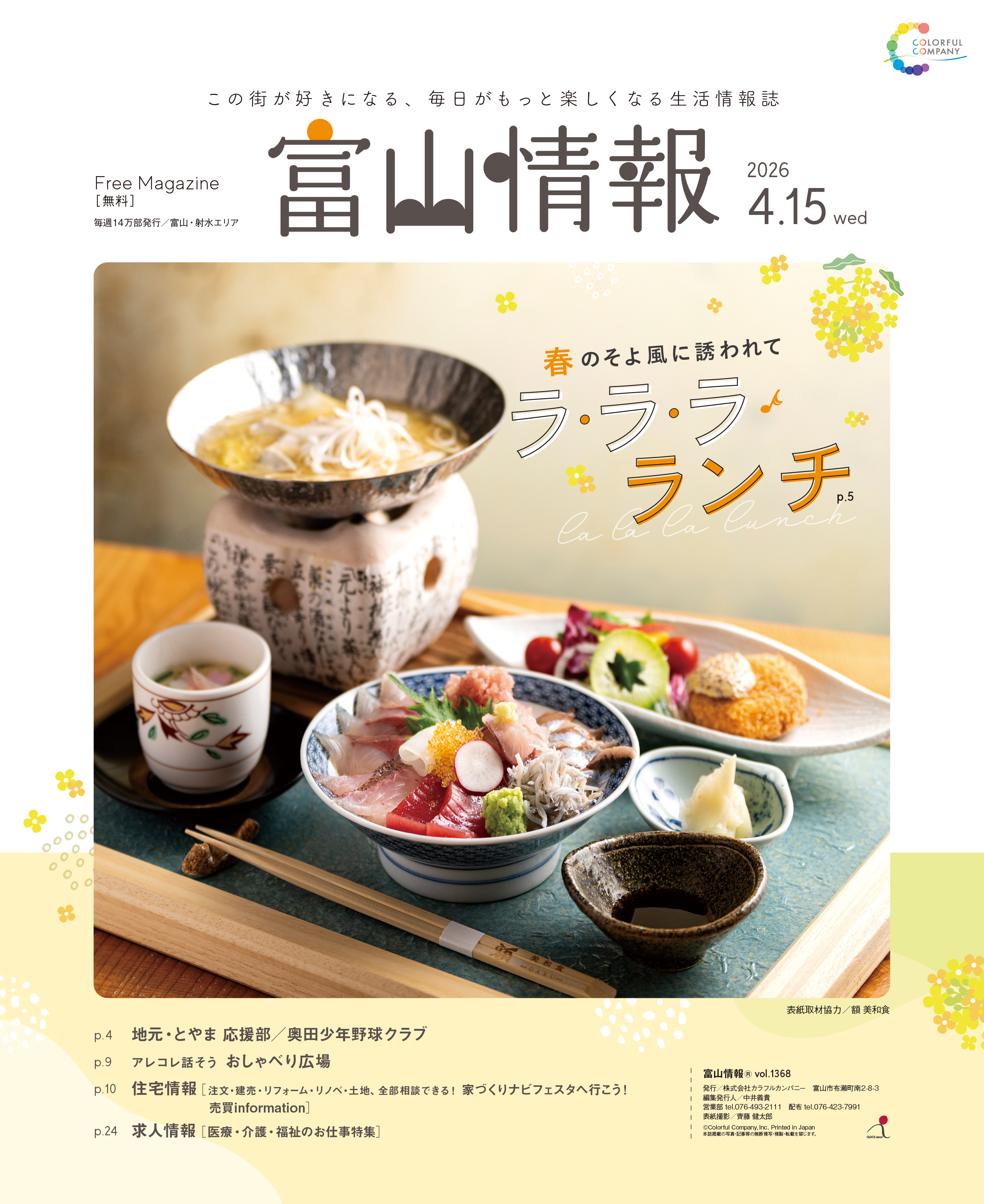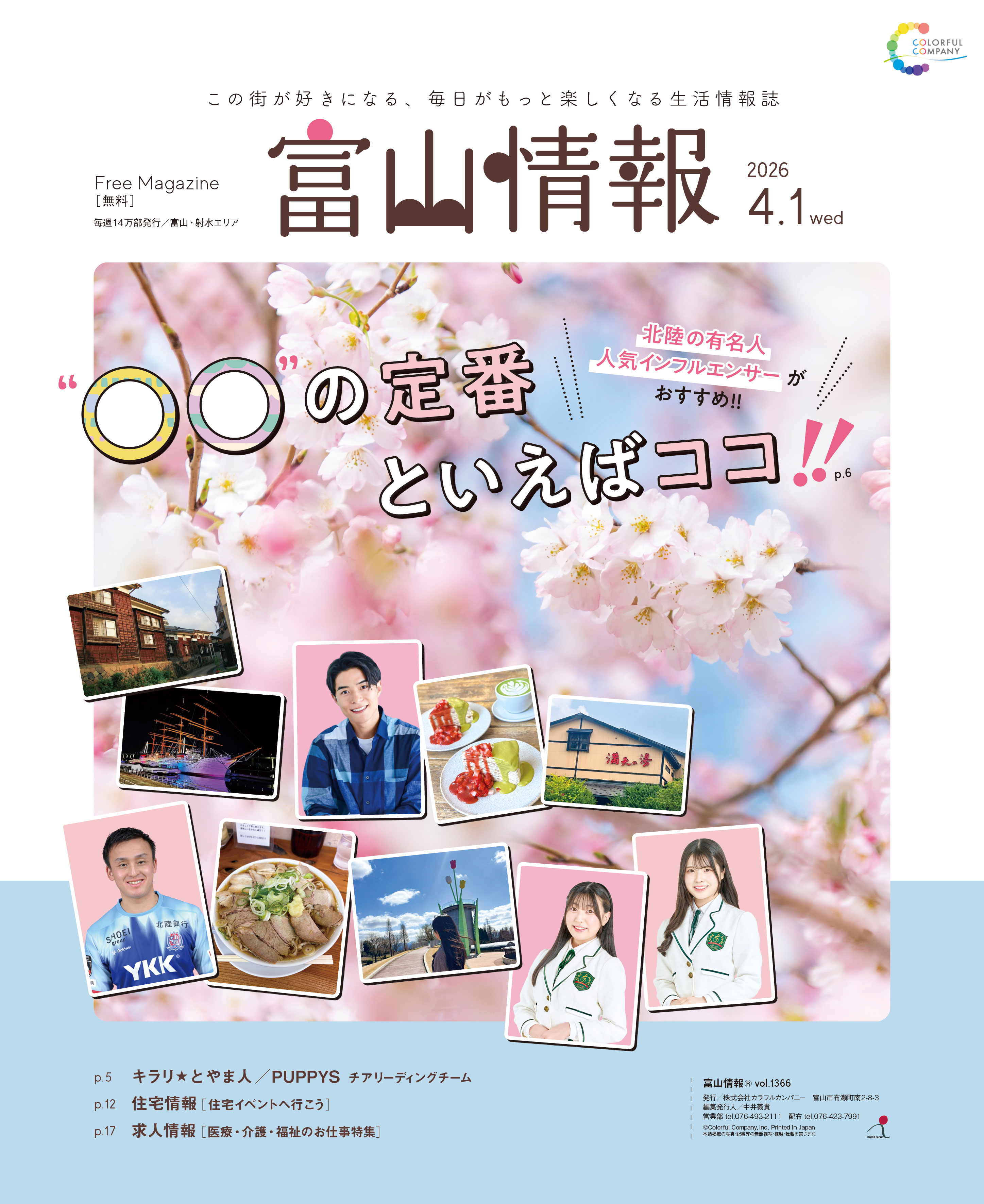 カラフルカンパニーの発行している媒体一覧。フリーマガジン『富山情報』など、食べる、飲むといった飲食情報はもちろん、その他思わずまちに行きたくなるような情報もりだくさん! 掲載されているお店の一覧や、お得なクーポンを今すぐチェック!