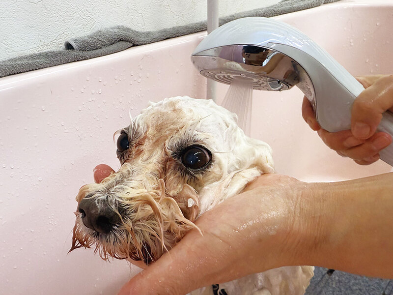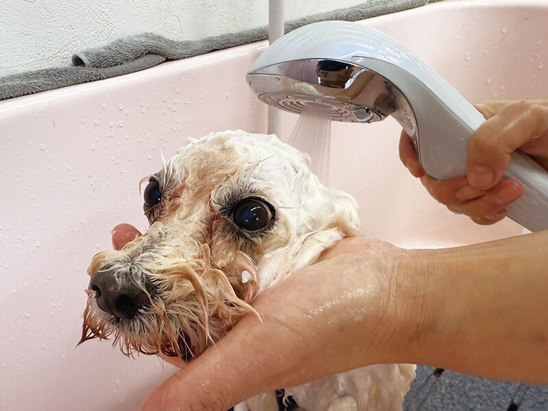 紫外線が強く暑くなる時期にはトリミングと合わせて、「泡スパ(温浴、2,000円~)」がオススメ。通常のシャンプーでは落としきれない汚れや皮脂を吸着・除去し体臭を軽減。