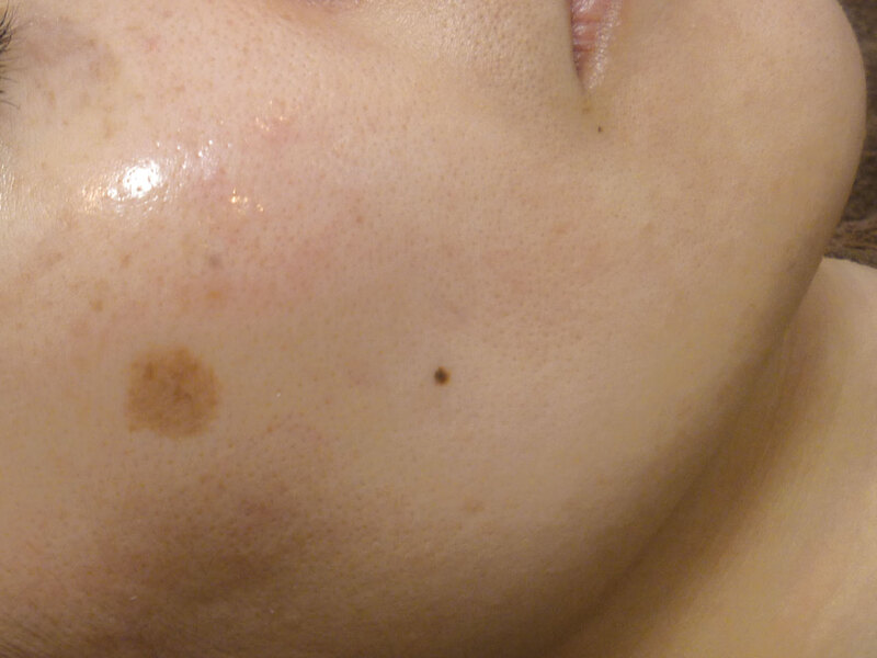 写真1.最新機器「リアージュ」を使用し、トリプル低周波パルスでシミを凝縮、3~7日程かけてアカとして排出!