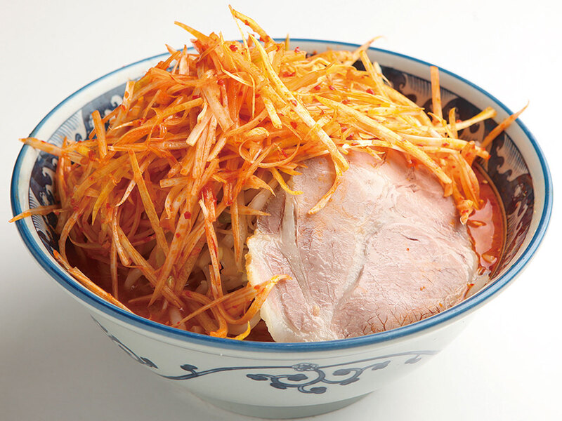 自慢の赤味噌スープに辛味を加え、辛さと旨さが共存! たっぷりの白髪ネギにも特製辛味タレを和えることで、一味違った味を楽しめる。辛さは7段階から選べる。