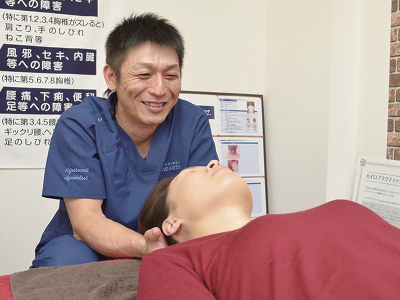「健康も美も美姿勢から!」。カイロでは骨盤から全身の歪みを整え、根本から改善に導いてくれる。気さくな院長が一人ひとりの身体に合った施術やアドバイスを提案。
