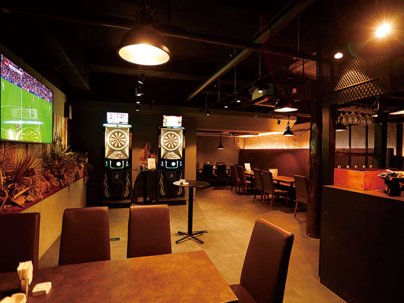 大きなモニターでスポーツ観戦やダーツ、シュミレーションゴルフもできる店内。遊びながら会話も弾み、大盛り上がりになること間違いなし!