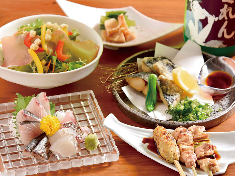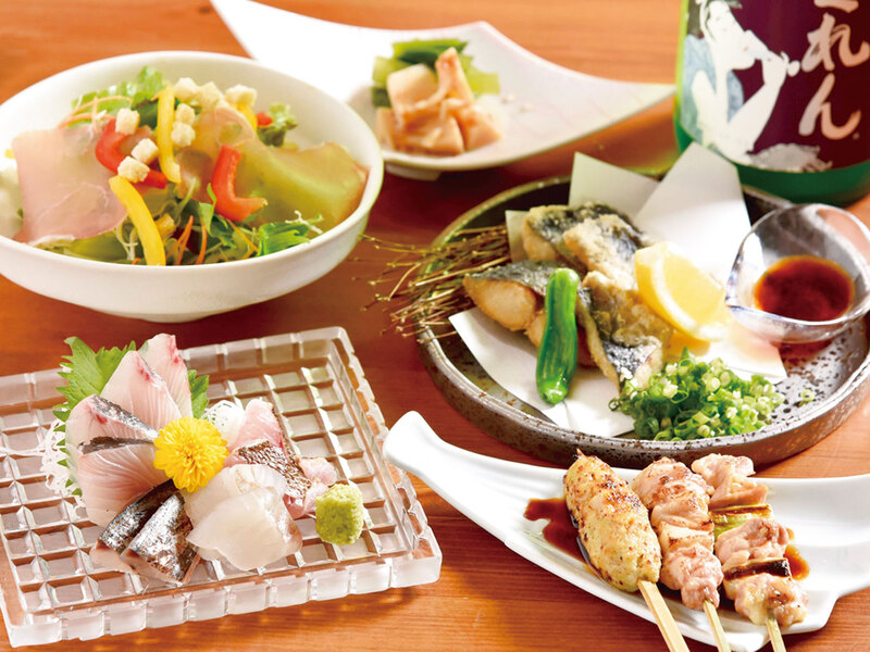 旬の刺身や炭火で焼き上げる国産の焼き鳥がおすすめのお店。お酒の種類も豊富で、ソムリエ監修のこだわりワインや日本酒が揃う。飲み放題もあり。
