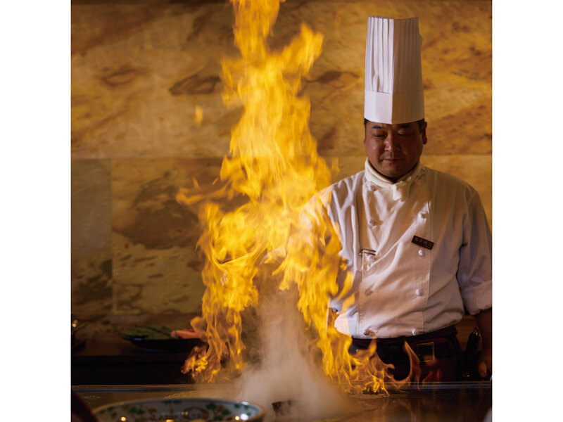 日本食をベースに季節のしつらえや器など細やかなおもてなしと、鉄板の上で繰り広げられる圧巻のパフォーマンスが心も満たす。満足のコースは、シェフ手作りのこだわりデザートで締めくくり。
