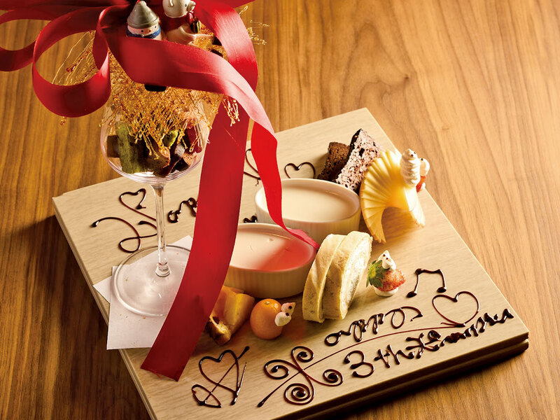 日本食をベースにした繊細な料理。シェフのダイナミックなパフォーマンスは、一期一会のライブエンターテイメント! 早期予約なら上記「桔梗コース」をベースにしたクリスマス仕様のコースに。 他コースは1名8,800円〜有。