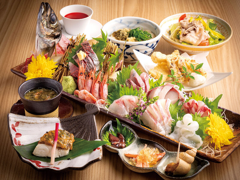 北陸の恵みを詰め込んだ前菜から、同店自慢の刺し盛、サクサクの衣が特徴の天ぷらなど大満足の全8品。