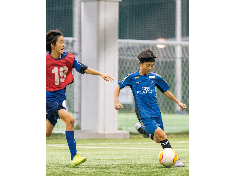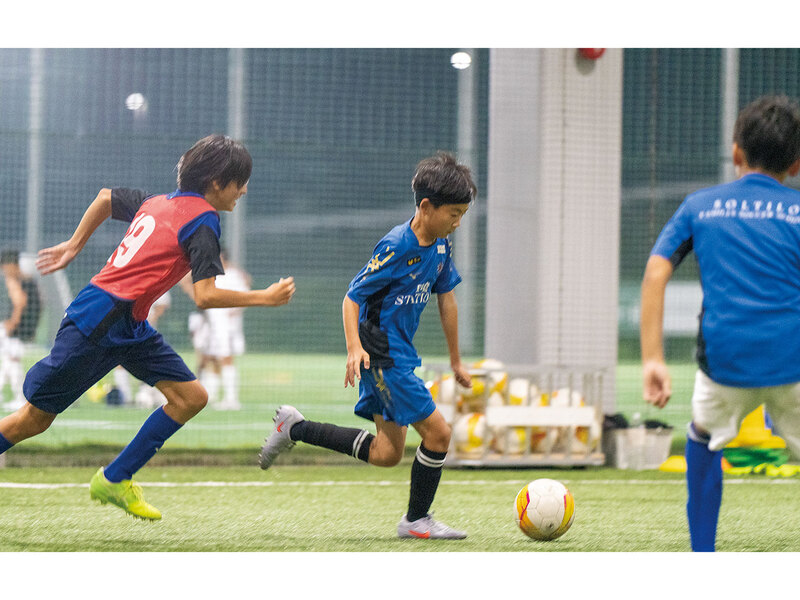 「本田圭佑メソッド」を用いて、技のレベルアップやチームプレーの面白さはもちろん、夢を持つことの大切さも一緒にサッカーを通じて伝える。屋根付人工芝なので、天気に左右されず練習できる!