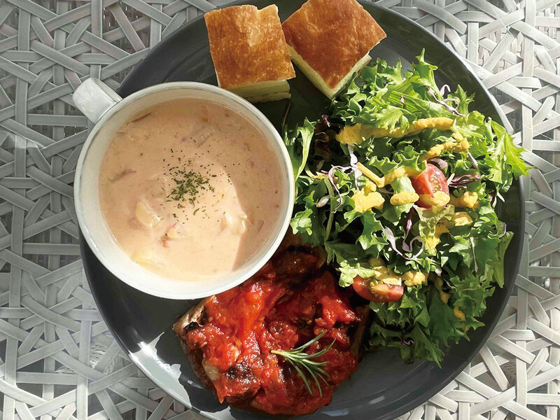 海王丸パーク内で帆船を眺めながら食事を楽しめる。新湊産の海鮮を使用しており、おすすめは期間限定「白エビのパスタ(写真1)」。光が差す明るい店内は授乳室やキッズスペース、キッズメニューもあり、ママ会にピッタリ。テラス席はペットもOK♪