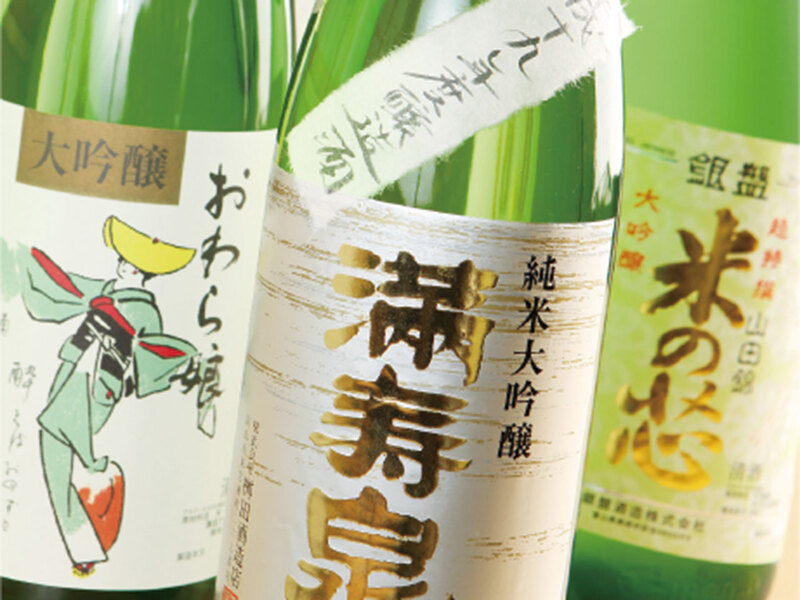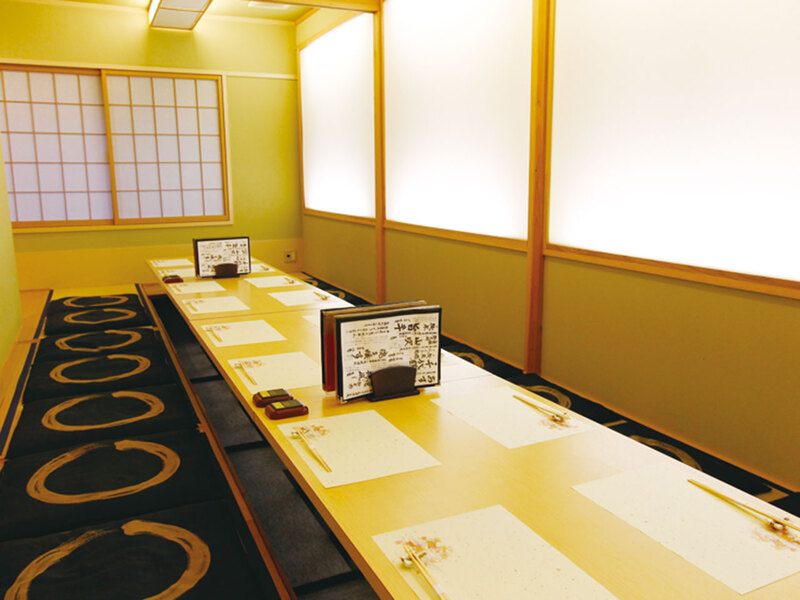 宴会にぴったりの2Fの個室は、堀りごたつなので足も楽ちん、ゆったり寛げる。地酒は県内全酒蔵の銘柄が揃う。