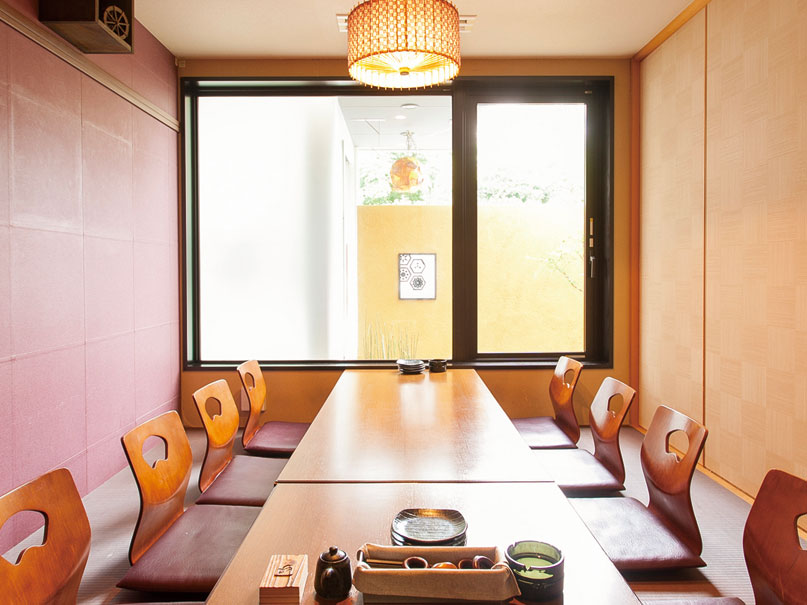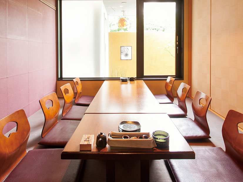 モダンな和の趣ある店内は、中庭が臨める座敷や個室が人気。旬の食材に工夫を凝らしたひと手間を加える事で新たな味を楽しめる。