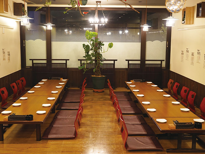 座席/カウンター9席、テーブル48席、座敷40席