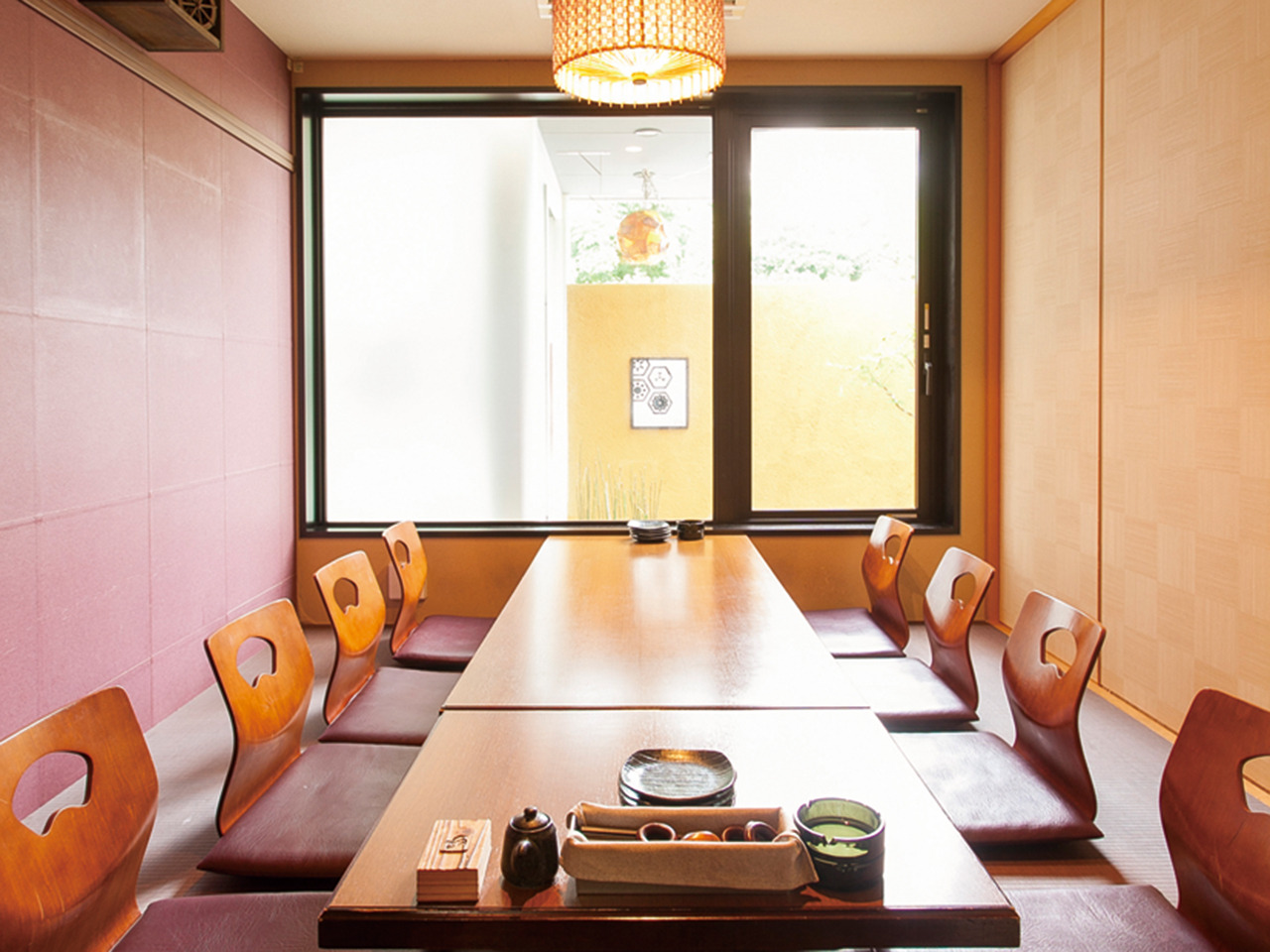 地元食材を使用した和食と創作料理が魅力。店内や中庭の植物が癒しを演出する落ち着いた空間。個室や座敷もあり、人数に合わせて利用可能。