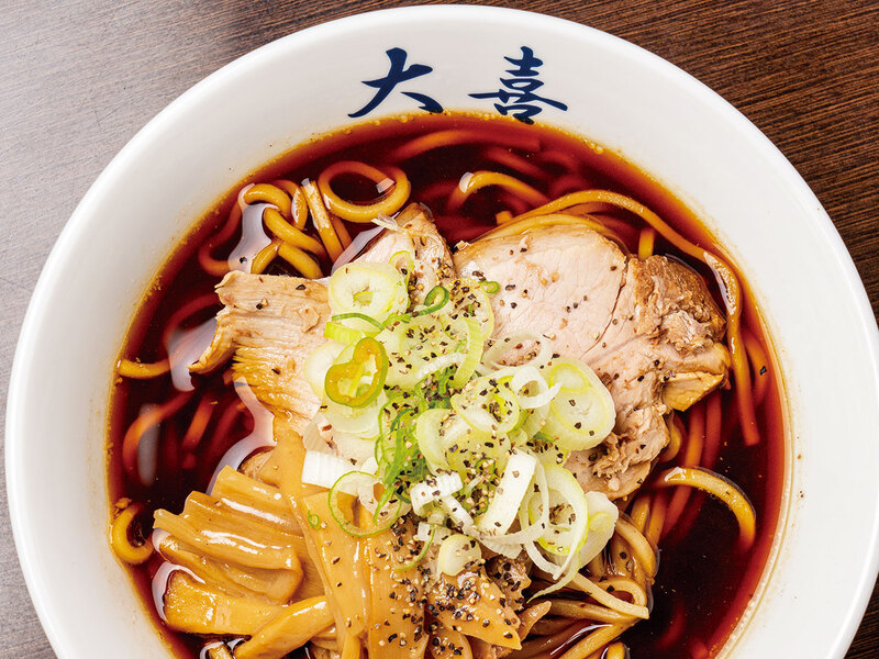 自慢の自家製麺と熟成ブラックスープが癖になる! 秋もやっぱり大喜で決まり! 店舗前の冷凍自動販売機や通販等、詳細はInstagram( @lacanca_shokudo)をチェック!!