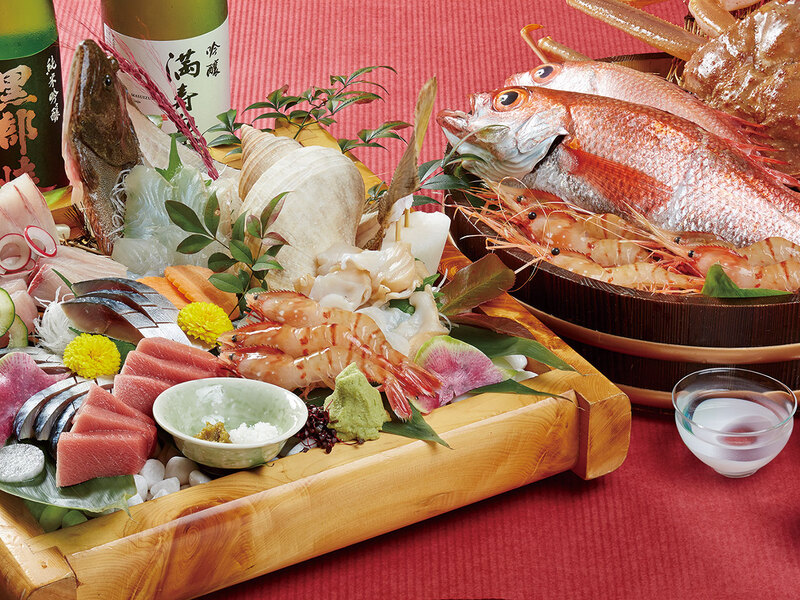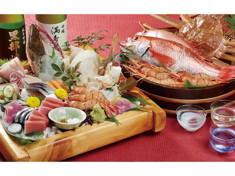 岩瀬漁港の地魚と、県内全酒蔵の銘柄が揃った地酒。職人の確かな腕で仕立てられた旬の美味は、おもてなしにもぴったり。